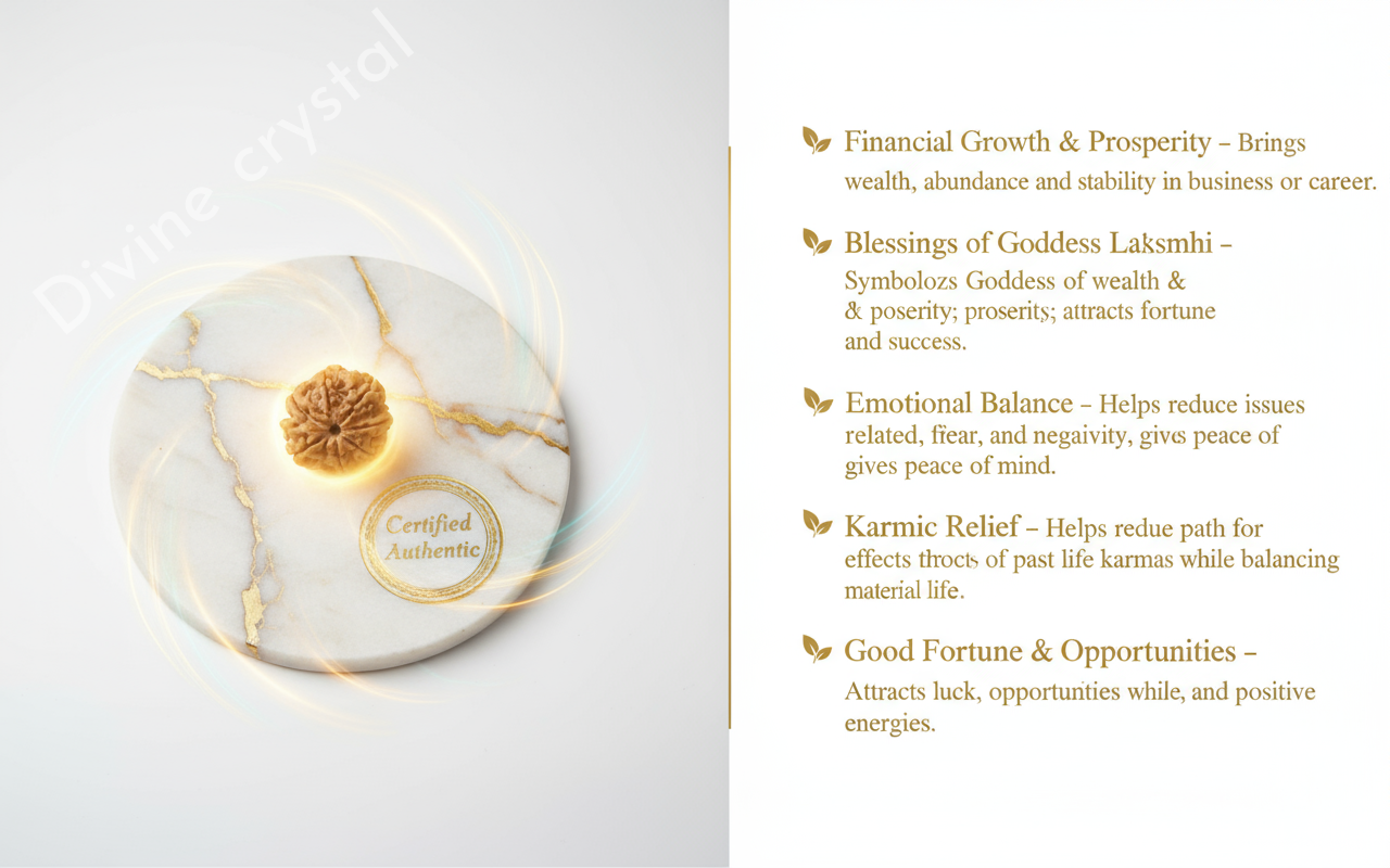The7 Mukhi Rudrakshis revered for its powerful connection to the energies of seven divine mothers (Matrikas). It helps in fostering inner peace, enhancing intuition, and balancing emotional stressed. This sacred bead influences the Svadhisthana (Sacral) chakra, promoting creativity and embracing life’s joys. It is also beneficial for individuals born under Vedic astrological signs, bestowing prosperity and abundance in their lives.