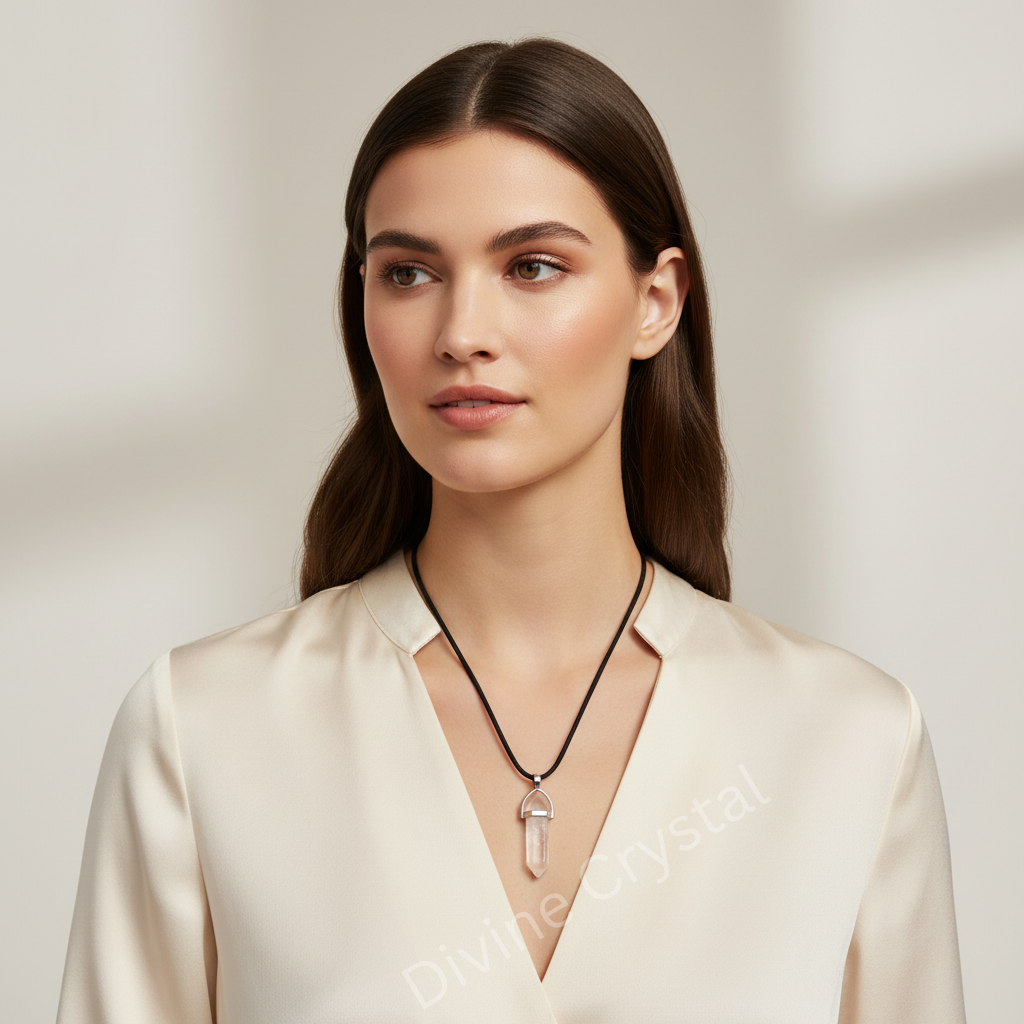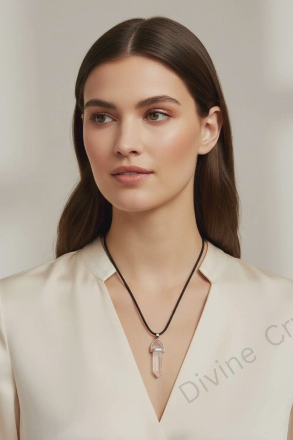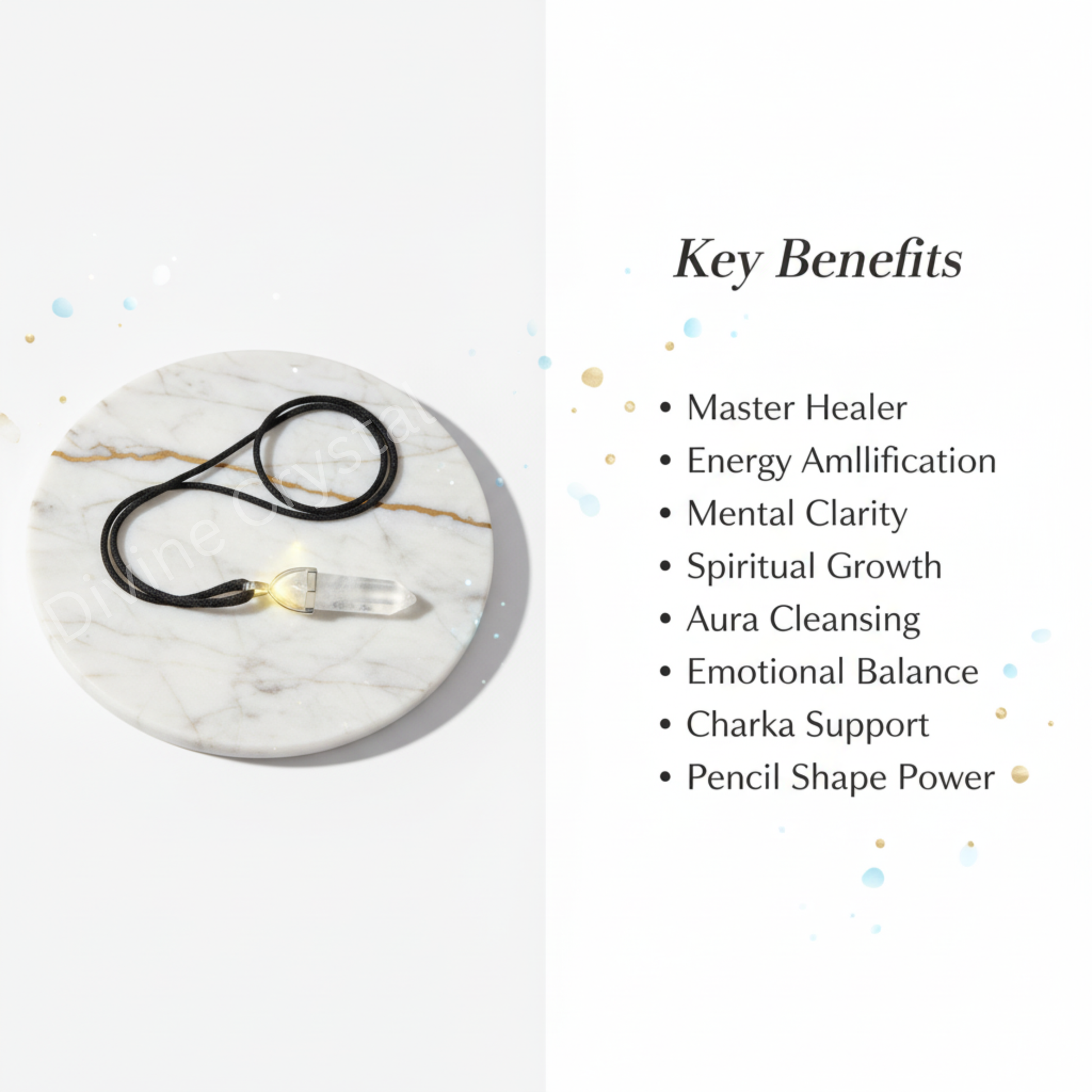Elevate your spiritual journey with the Clear Quartz Double Pointed Pencil Pendant from Divine Crystal. A perfect blend of elegance and energy, this pendant is designed to amplify clarity, focus, and positive vibrations.