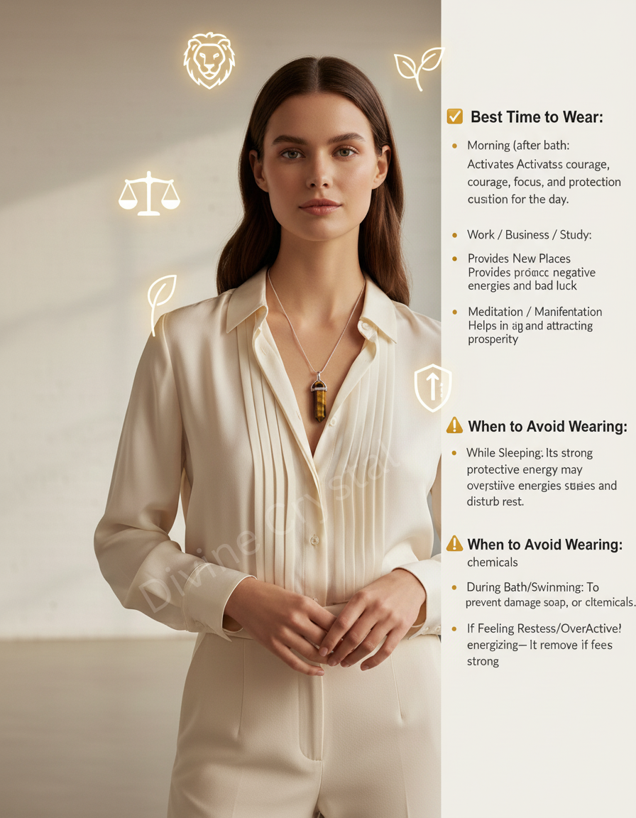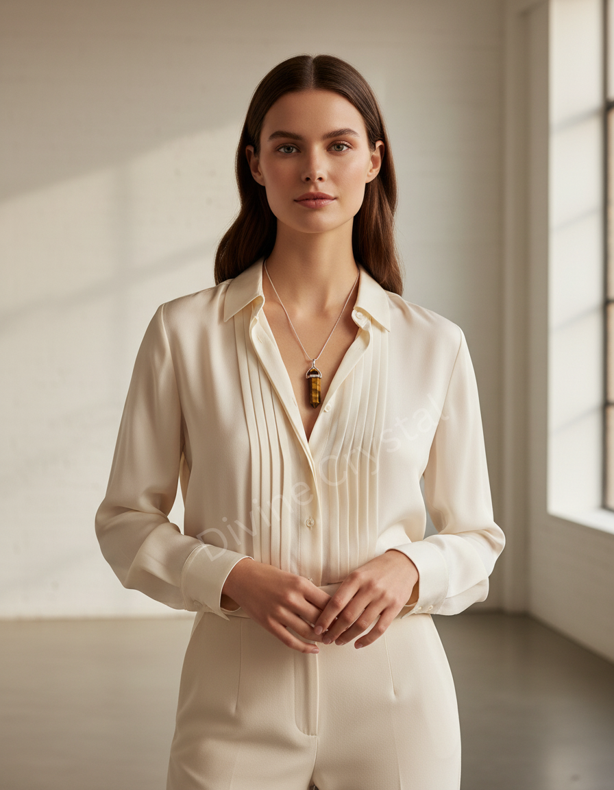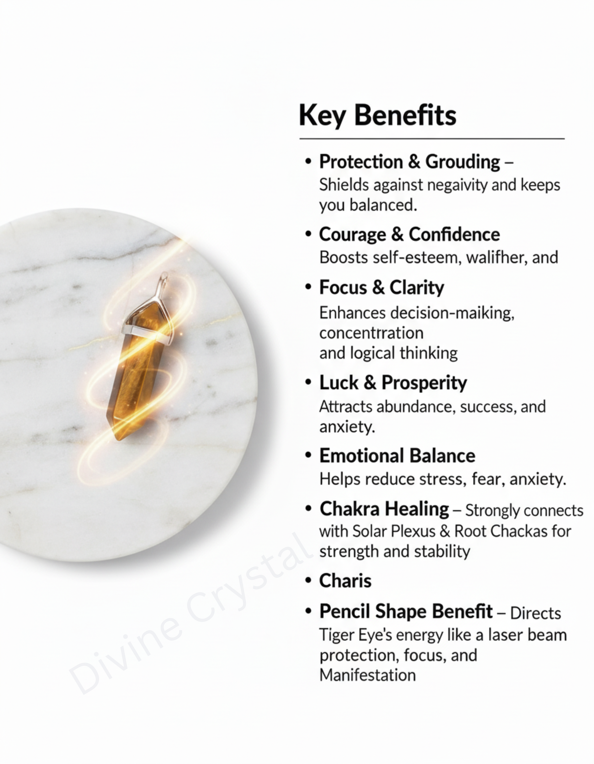 The Tiger Eye Pendant is known for its grounding and protective energies. It enhances courage, clarity, and focus while balancing the solar plexus chakra. Astrologically, it resonates with Gemini and Leo, promoting confidence and inner strength.